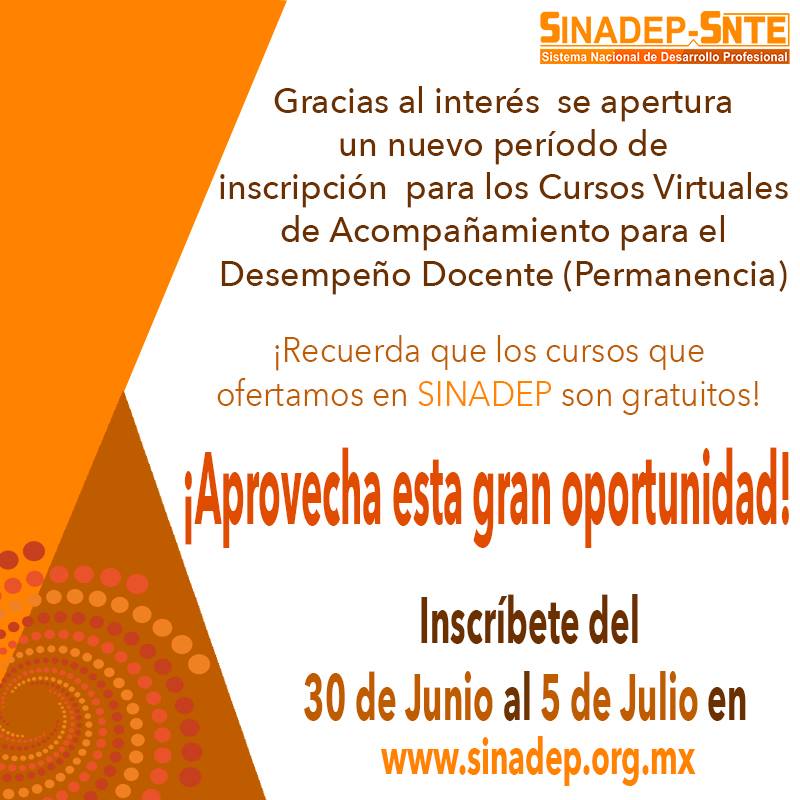 El Sistema Nacional de Desarrollo Profesional (Sinadep), perteneciente al Sindicato Nacional de Trabajadores de la Educación (SNTE), anunció que ante la gran demanda de los cursos que ofrece para ayudar en la preparación de las y los maestros ante las próximas evaluaciones, abrirá nuevas fechas.