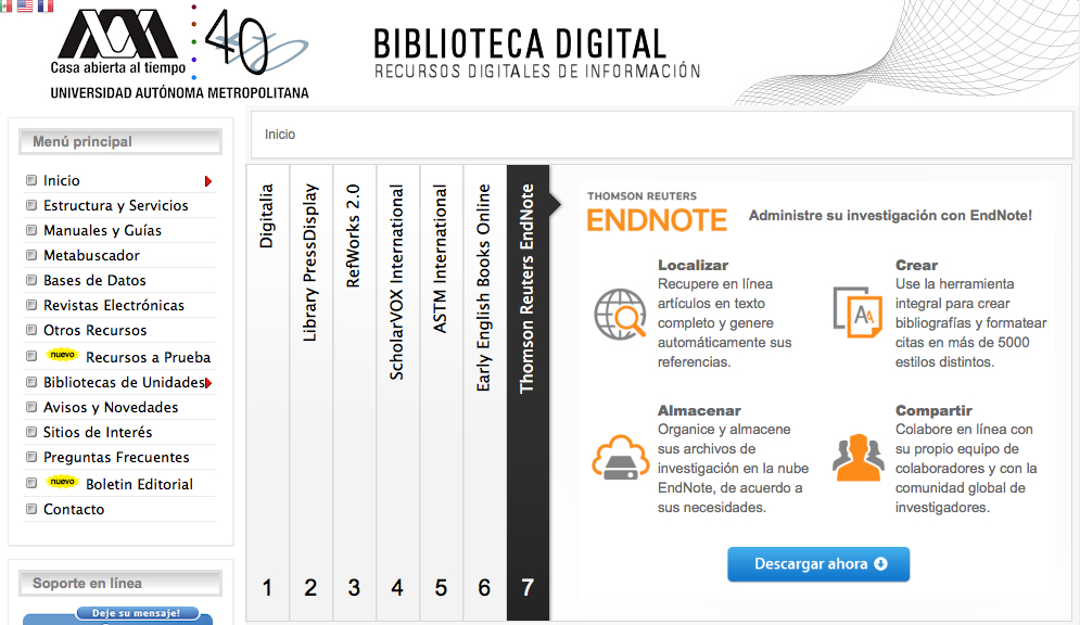 Algunos de los servicios de la biblioteca digital, indicó, son el acceso remoto a los servicios electrónicos, el acceso directo a los recursos digitales, el uso del metabuscador que es una herramienta Web 2.0 que permite búsquedas simultáneas en varios recursos electrónicos y el contar con una biblioteca digital personalizada.