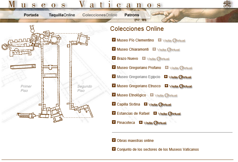 En la página de los Museos Vaticanos se puede consultar una gran cantidad de información relacionada a cada obra, sin embargo las imágenes son muy pequeñas y no se aprecian como nos gustaría, casi en ninguna imagen es posible la ampliación y aunque cuenta con visitas virtuales es complejo manejarlas, a pesar de todo, lo recomendable es la información y no las imágenes.