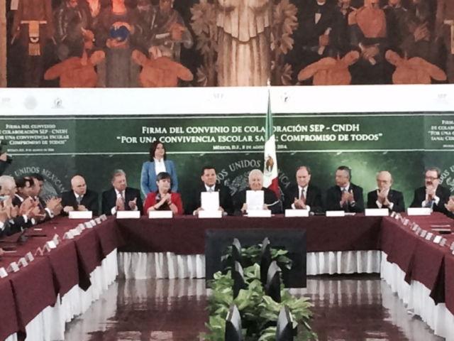 Un nuevo convenio que busca erradicar el acoso escolar de los centros educativos fue firmado este viernes por los titulares de la Secretaría de Educación Pública (SEP), y la Comisión Nacional de Derechos Humanos (CNDH), Emilio Chuayffet y Raúl Plascencia, respectivamente.