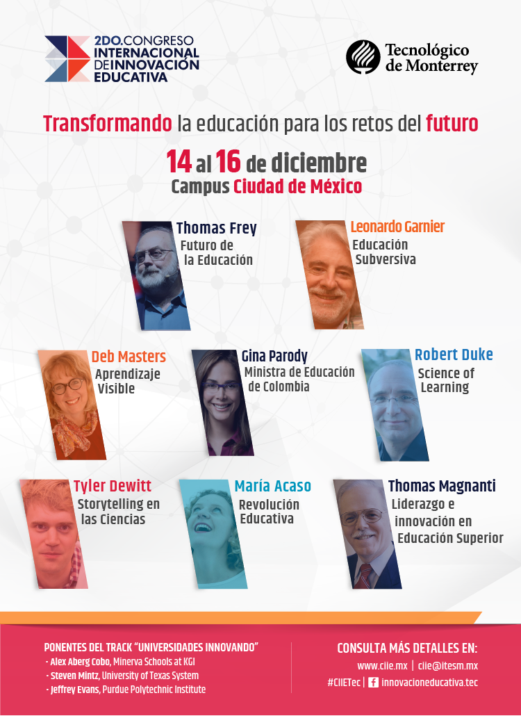 Del 14 al 16 de diciembre se celebrará el 2do Congreso Internacional de Innovación Educativa, en el Campus Ciudad de México, del Tecnológico de Monterrey.