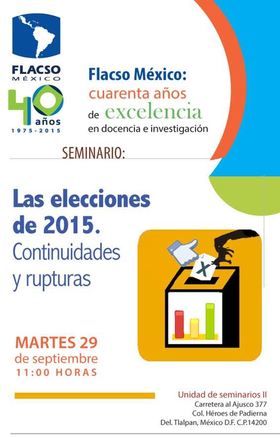 La Facultad Latinoamericana de Ciencias Sociales (Flacso) realizará el seminario Las elecciones de México 2015: continuidades y rupturas, mañana martes 29 de septiembre, a partir de las 11:00 horas.