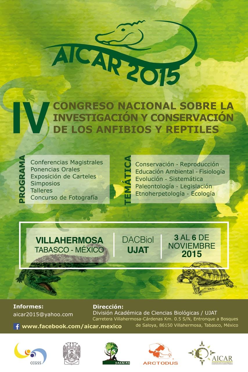 Del 3 al 6 de noviembre de 2015, se celebrará en Villahermosa, Tabasco, el V Congreso Nacional sobre la Investigación y la Conservación de Anfibios y Reptiles, organizado por el Centro del Cambio Global y la Sustentabilidad en el Sureste (CCGSS), la Universidad Juárez Autónoma de Tabasco (UJAT) y la Asociación para la Investigación y Conservación de los Anfibios y Reptiles (AICAR).