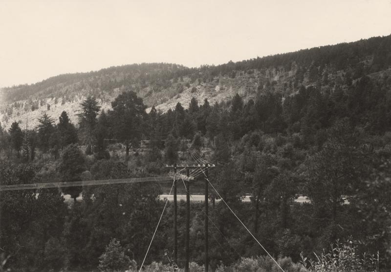 La línea Telefónica que une a las ciudades de México y Puebla, en el distrito montañoso, a 50 kilómetros de la primera de dichas ciudades. Fecha: c.1928