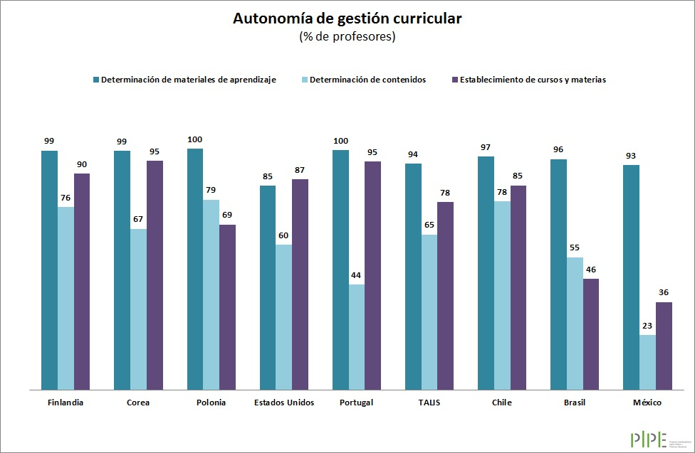 Los directores mexicanos reportan que decisiones como la contratación de profesores, la fijación de salarios, el ejercicio presupuestal y la determinación de contenidos curriculares no se toman al interior de la escuela. La mayoría de los profesores mexicanos trabajan en escuelas cuyo Director considera que la autonomía escolar es nula.