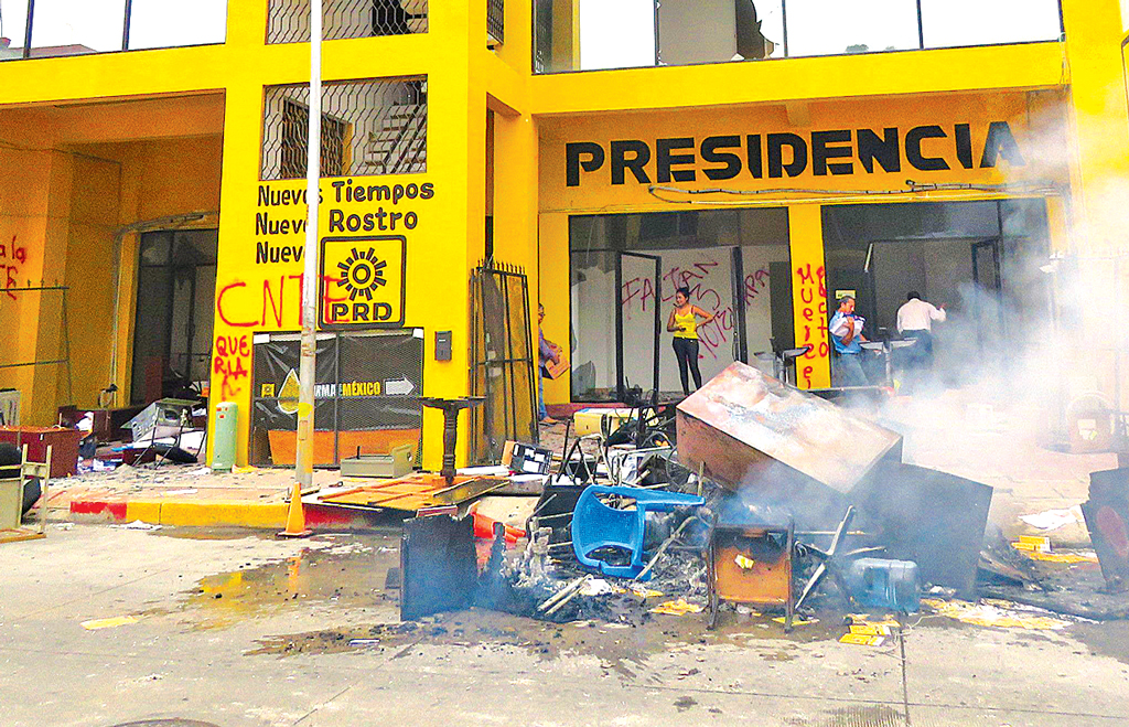 En Tuxtepec, los integrantes de la CNTE saquearon y quemaron el mobiliario de la Junta Distrital.