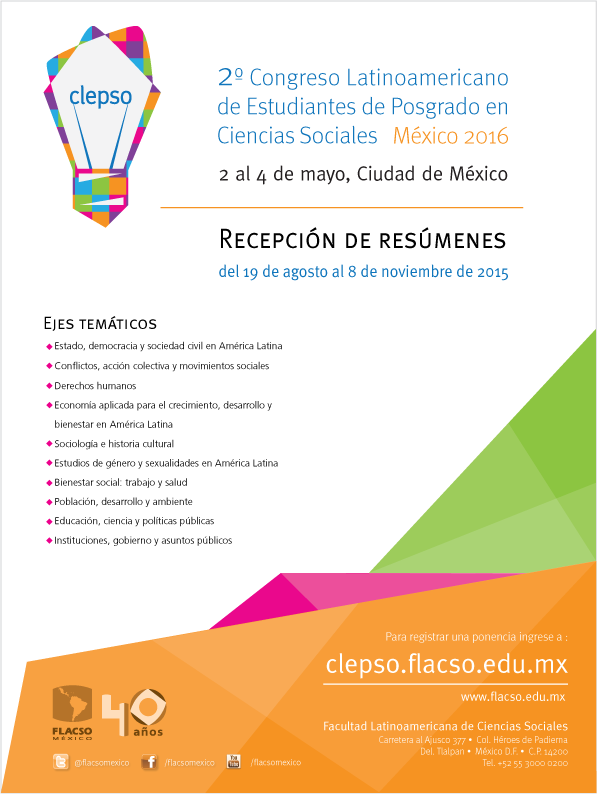 La Facultad Latinoamericana de Ciencias Sociales (Flacso) México, lanza la convocatoria para el Segundo Congreso Latinoamericano de Estudiantes de Posgrado (Clepso).