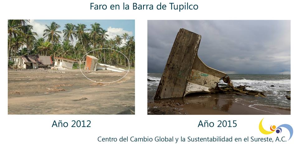 El segundo impacto en la región costera es la erosión de la tierra y el avance del mar sobre tierra firme, “hay estimación del Instituto Nacional de Ecología, de que en 20 o 30 años Tabasco puede perder 8% de su tierra por incremento en el nivel del mar”.