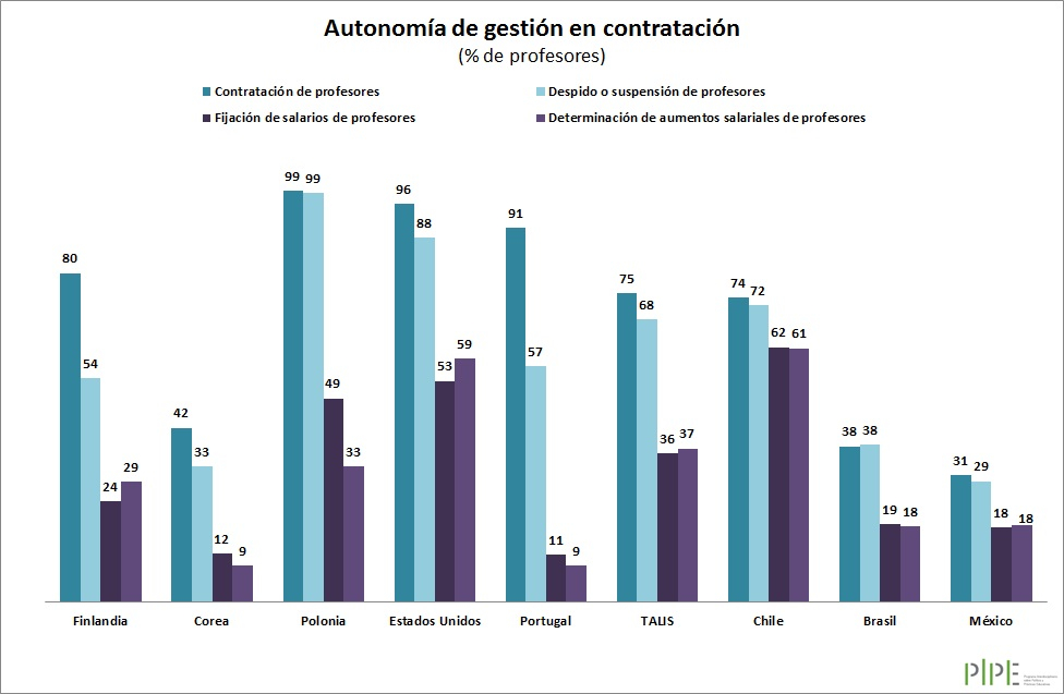 Los directores mexicanos reportan que decisiones como la contratación de profesores, la fijación de salarios, el ejercicio presupuestal y la determinación de contenidos curriculares no se toman al interior de la escuela. La mayoría de los profesores mexicanos trabajan en escuelas cuyo director considera que la autonomía escolar es nula.