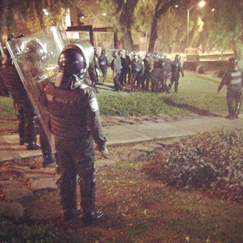 Poco después de las 21:00, un grupo de jóvenes con el rostro cubierto sacó del circuito de Ciudad Universitaria el auto en el que a mediodía de este sábado un grupo de agentes de la Procuraduría General de Justicia del Distrito Federal había entrado al campus, y le prendió fuego al vehículo, lo que generó la llegada al lugar de granaderos de la policía capitalina, reporta el diario La Jornada