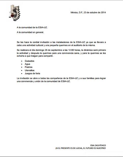 Por lo que la ESIA, según aseguraron sus estudiantes, será la última escuela en levantar el paro que lleva casi un mes, de manera generalizada, en las 44 escuelas del IPN.
