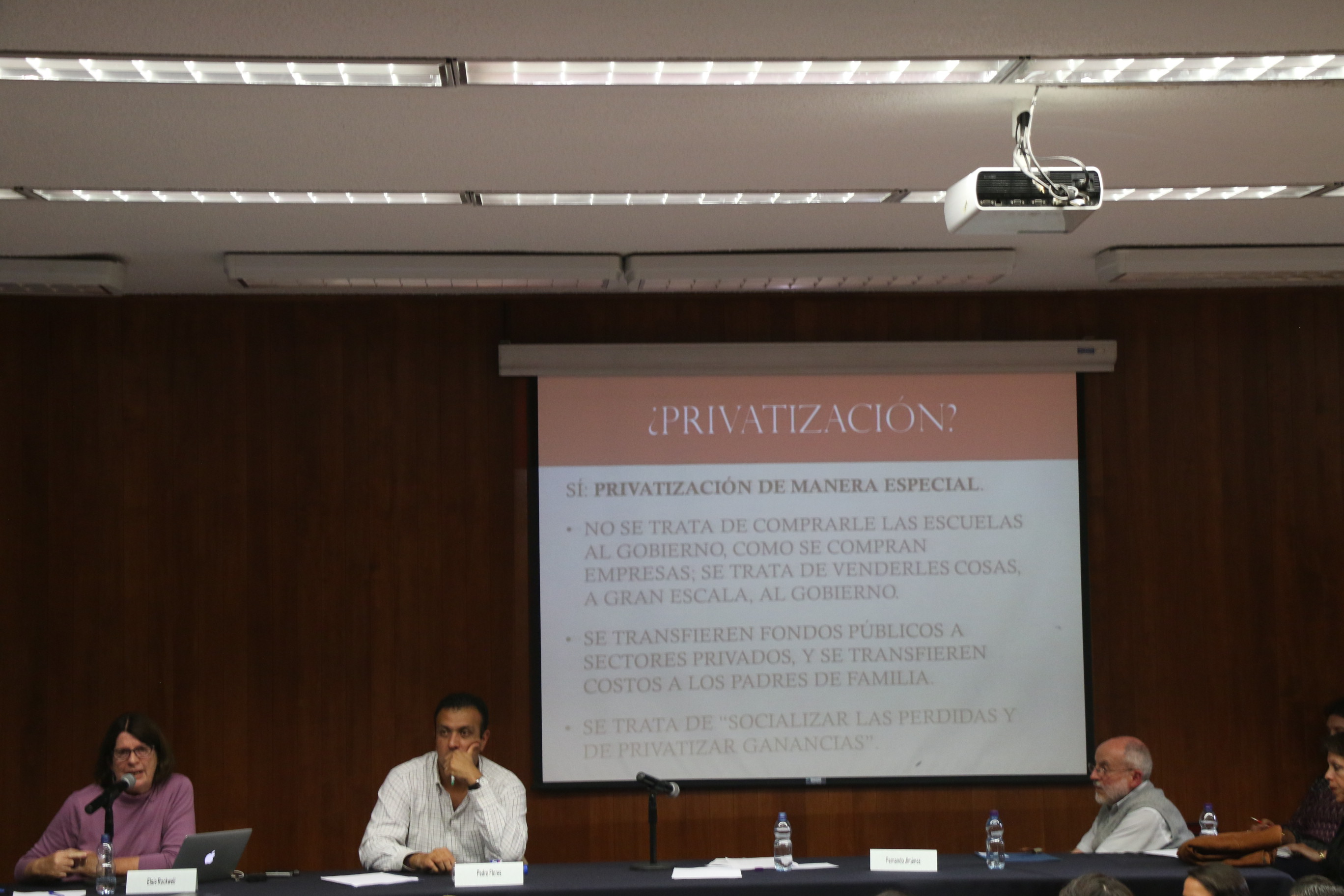Por su parte, Elsie Rockwell, investigadora del Departamento de Investigaciones Educativas, del Cinvestav, señaló que la escuela pública está atravesando un proceso de privatización, sin embargo, esta se presenta de formas poco comunes, pues muchos particulares le venden productos y servicios a las autoridades educativas, los cuales, dijo, muchas veces terminan siendo obsoletos, y se benefician de los recursos públicos.