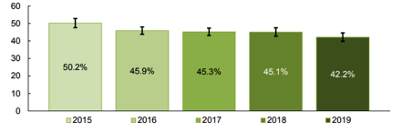 Figura 1. Porcentaje de la población de 18 y más años, lectora de libros de 2015 a 2019
