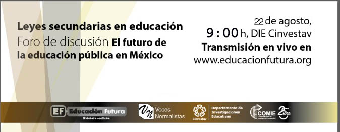 Educación Futura en colaboración con Voces Normalistas, el Consejo Mexicano de Investigación Educativa (COMIE) y el Departamento de Investigaciones Educativas (DIE) del Cinvestav realizarán un Foro de análisis sobre las propuestas de Leyes Secundarias en Educación.