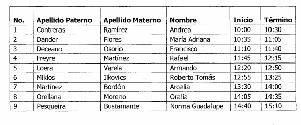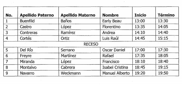 Las comparecencias para la Junta Directiva se llevarán a cabo el lunes 10 de junio de 2019 a partir de las 13:00 horas, en la Sala 5 de la Planta Baja del Hemiciclo del Senado de la República. Mientras tanto, para el Consejo Técnico se llevarán a cabo el martes 11 de junio de 2019 a partir de las 10:00 horas en el mismo sitio.