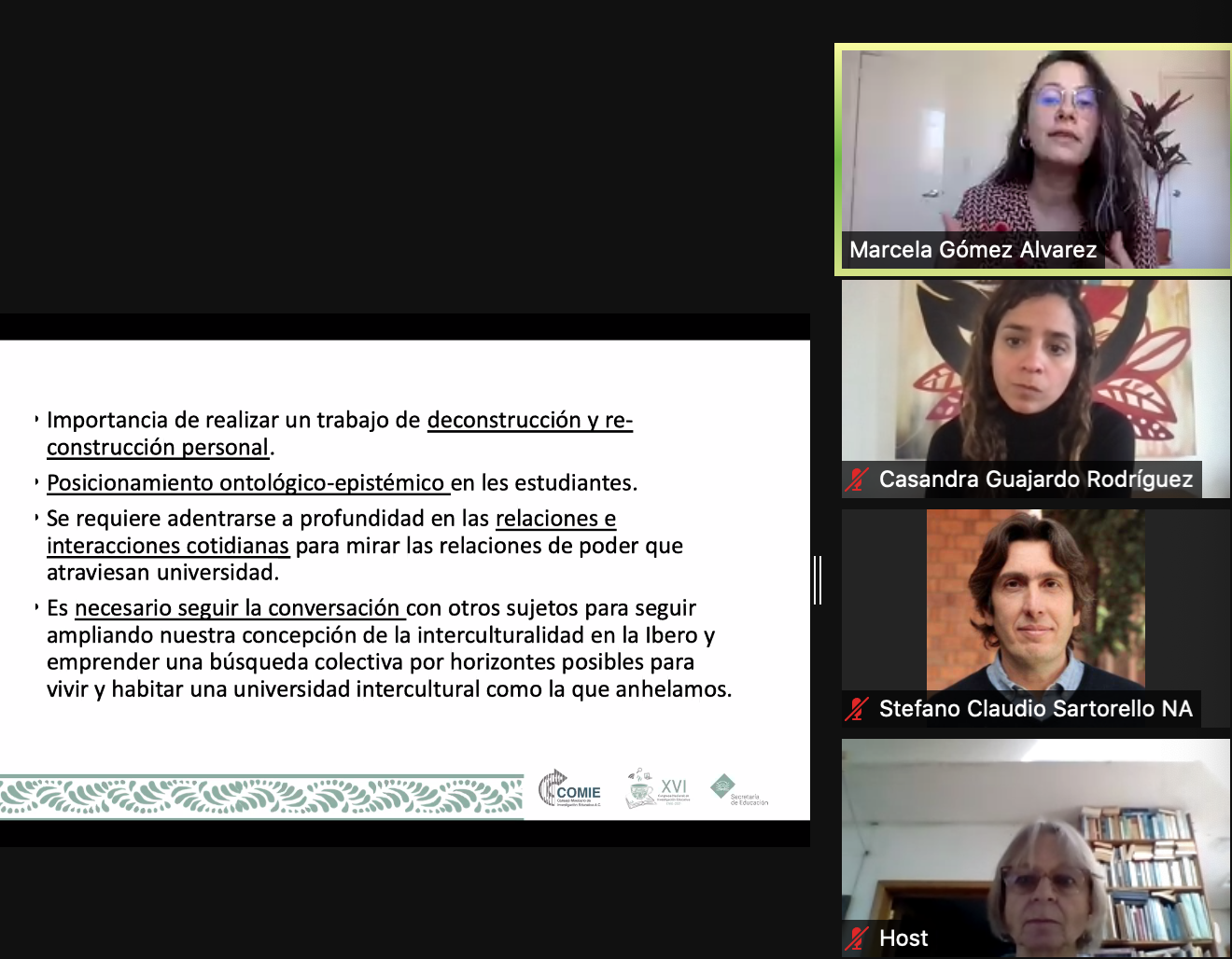 Con el antecedente de los nuevos planes de estudio Manresa en la Universidad Iberoamericana, donde uno de los ejes transversales es la interculturalidad; el INIDE buscó indagar sobre percepciones, reflexiones y experiencias estudiantes alrededor de este concepto, afirmó la Mtra. Marcela Gómez Álvarez.