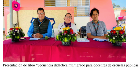 Se realizó la presentación de los tres libros que componen las Secuencias didácticas multigrado para docentes de escuelas primaria (2021): Orientaciones para el trabajo en contextos escolares multigrado, Propuestas de trabajo en el aula y Cuaderno de Actividades para alumnos. Con la participación del Dr. Diego Juárez Bolaños y la Doctoranda Tania Santos Cano, quienes forman parte de la coordinación y equipo de diseño, respectivamente, además de la moderación del Mtro. Alejandro Hoyos Montoya. Las intervenciones sobre se realizaron sobre cómo los libros pretenden apoyar el trabajo de docentes y estudiantes, específicamente para la asignatura de Exploración del Mundo Natural con la finalidad de fortalecer la recuperación de saberes locales y la enseñanza de lenguas indígenas, también se compartió sobre la organización de las secuencias a partir de 12 temas comunes.
