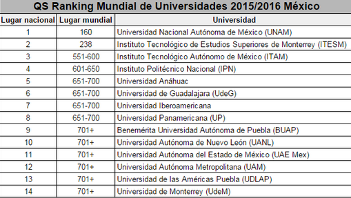 Hace algunas semanas apareció como noticia que la UNAM escaló 16 lugares dentro de las mejores universidades del mundo. El ranking lo realizó Quacquarelly Symonds (QS), una empresa inglesa que desde el 2004 elaboró con el Times Higher Education rankings de las mejores universidades a nivel internacional, y que a partir del 2011 empezó tales actividades de manera independiente para regiones como Latinoamérica.