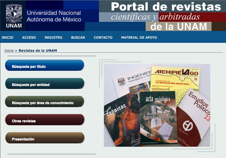 revistascientificas_unam¿Qué papel toman las universidades? Es en este punto donde la Universidad Nacional Autónoma de México (UNAM) es una institución de investigación referente que decididamente ha tomado una postura sobre el acceso público al conocimiento y formar parte del denominado open journal sistems. La UNAM ha creado un portal de revistas de investigación ciencia y tecnología de acceso público.