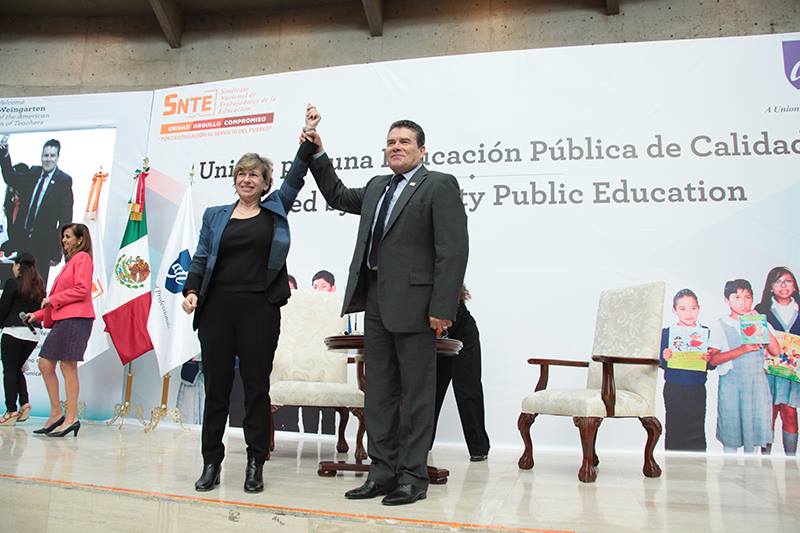 Ambos dirigentes firmaron la Declaración en Defensa de la Escuela Publica, la cual, señala la unión de los trabajadores de la educación en torno a un compromiso común en defensa de la educación pública, gratuita y de calidad que asegure la oportunidad de soñar y cumplir los sueños de los niños y jóvenes, además de buscar escuelas fuertes en comunidades fuertes, luchando porque la escuela no sea una mercancía.