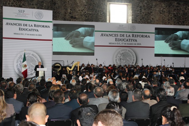 El discurso del secretario fue el meollo del ceremonial. Hay que reconocerlo, su pieza fue concisa, clara y con un argumento lógico. Expresó las bondades de la reforma, describió los programas que se derivan de la enmienda a los artículos 3 y 73 de la Constitución, como la Ley General del Servicio Profesional Docente y la del Instituto Nacional para la Evaluación de la Educación. No se quedó allí, dijo que llegó el tiempo de la materialización de la reforma en programas concretos, mencionó el Sistema Nacional del Servicio Profesional Docente y el Sistema de Información y Gestión Educativa.