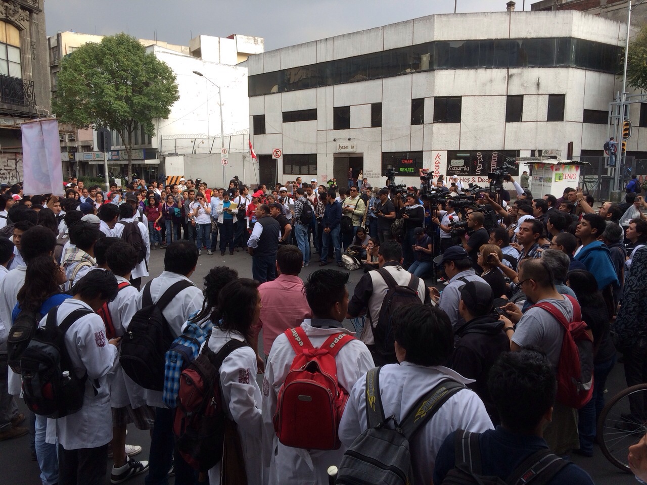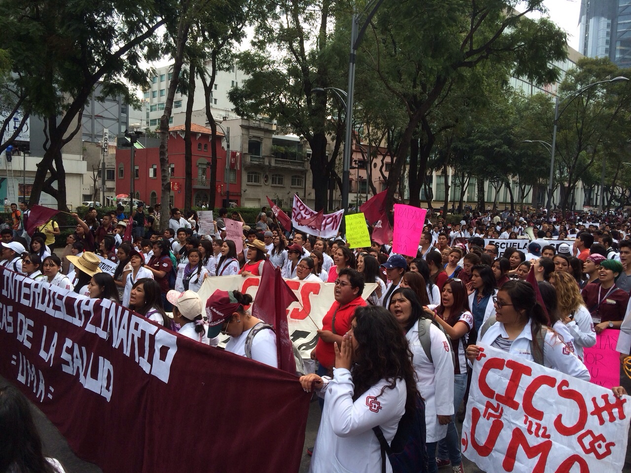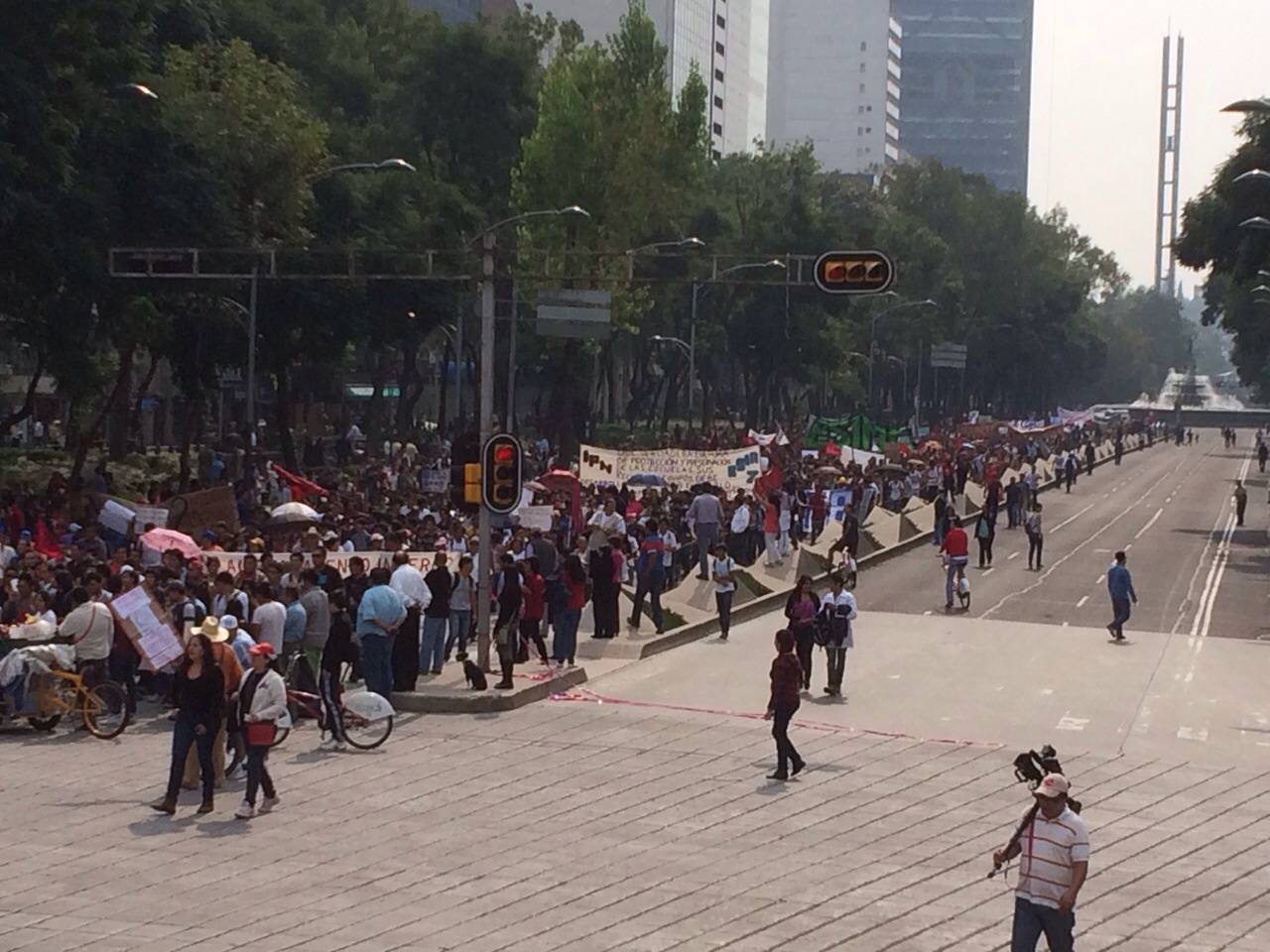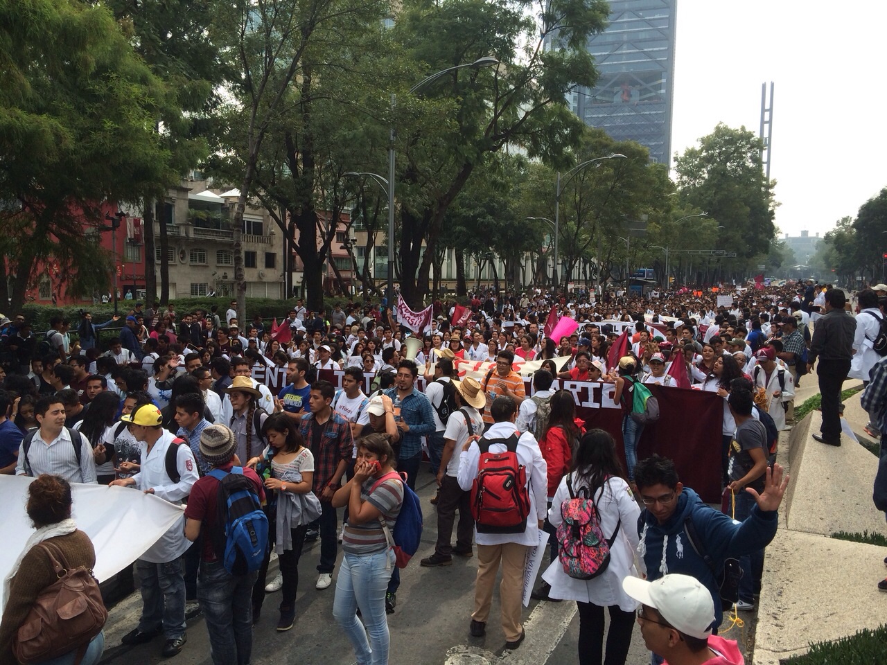 Miles de estudiantes del Instituto Politécnico Nacional (IPN), marchan desde las 3 de la tarde de la Estela de Luz a la Plaza de las Tres Culturas en Tlatelolco, en la cuarta marcha de los politécnicos; una comitiva se desprendió ya del contingente principal para entregar su contrapropuesta a la Secretaría de Gobernación y, una vez entregado el documento, se reintegran a la marcha rumbo a Tlatelolco.
