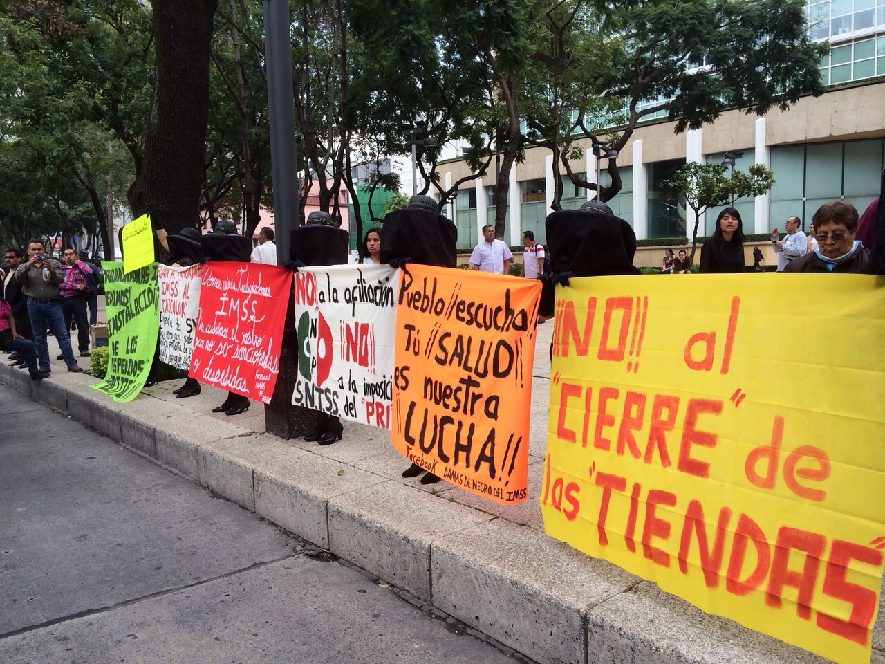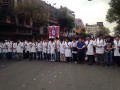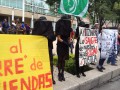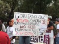 Otro contingente de la marcha se desvía a la SEP donde hacen entrega, bajo la lluvia, de sus demandas. El contingente espera, en República de Brasil, respuesta de la SEP.