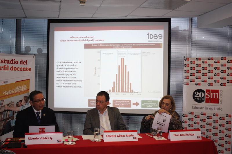 Al presentar el “Estudio diagnóstico de áreas de oportunidad del perfil docente”, realizado por el Instituto de Evaluación y Asesoramiento Educativo (IDEA), con apoyo de la Fundación SM y de Ediciones SM, Gómez Morin señaló que“los maestros han dejado de ser la personas que transmitían el conocimiento, para ser los mediadores de éste. Por ello, entender lo que ocurre en el aula es entender lo que se puede hacer para mejorar la calidad de la educación” .