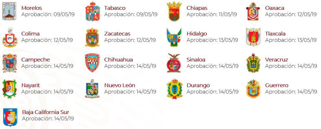 Ahora, el titular del Ejecutivo, Andrés Manuel López Obrador, ya puede proceder con su promulgación y entrada en vigor. Los congresos que previamente dieron luz verde a la reforma educativa son Morelos, Tabasco, Chiapas, Oaxaca, Colima, Zacatecas, Hidalgo, Tlaxcala, Campeche, Chihuahua, Sinaloa, Veracruz, Nayarit, Nuevo León, Durango y Guerrero.