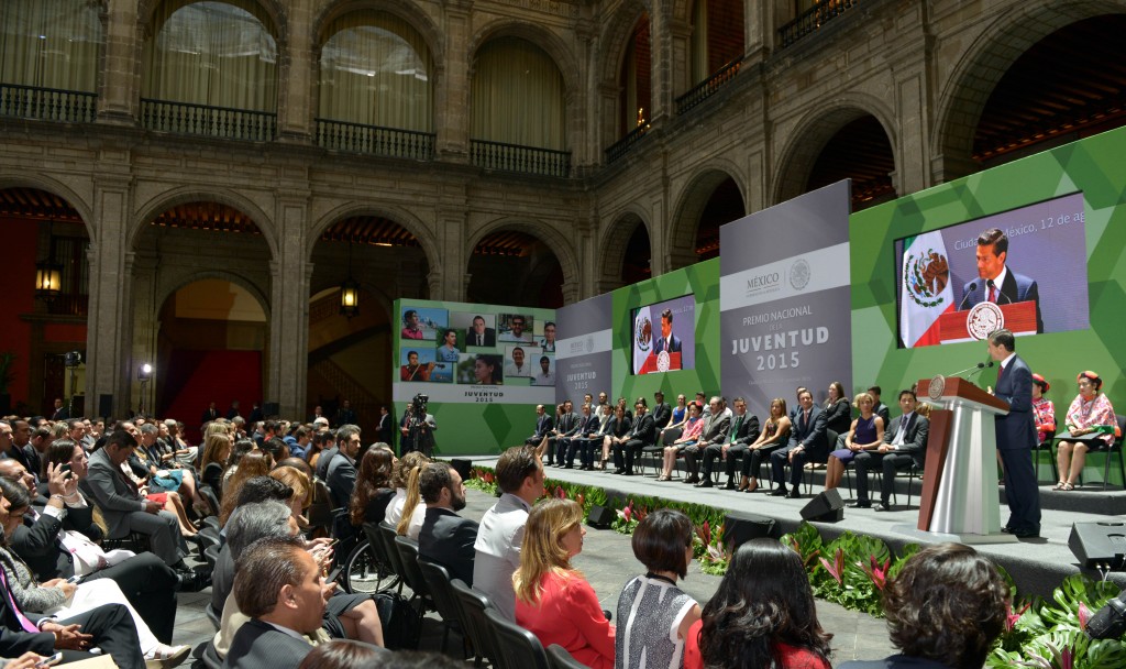 premio-juventud2Las reformas estructurales impulsadas por el gobierno “están dedicadas a lograr que a la juventud de hoy le depare un mejor mañana”, afirmó hoy el Presidente Enrique Peña Nieto, al encabezar la ceremonia de entrega del Premio Nacional de la Juventud 2015.